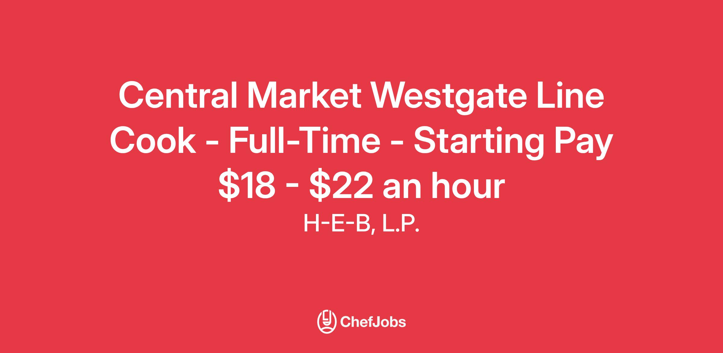Central Market Westgate Line Cook - Full-Time - Starting Pay $18 - $22 an hour