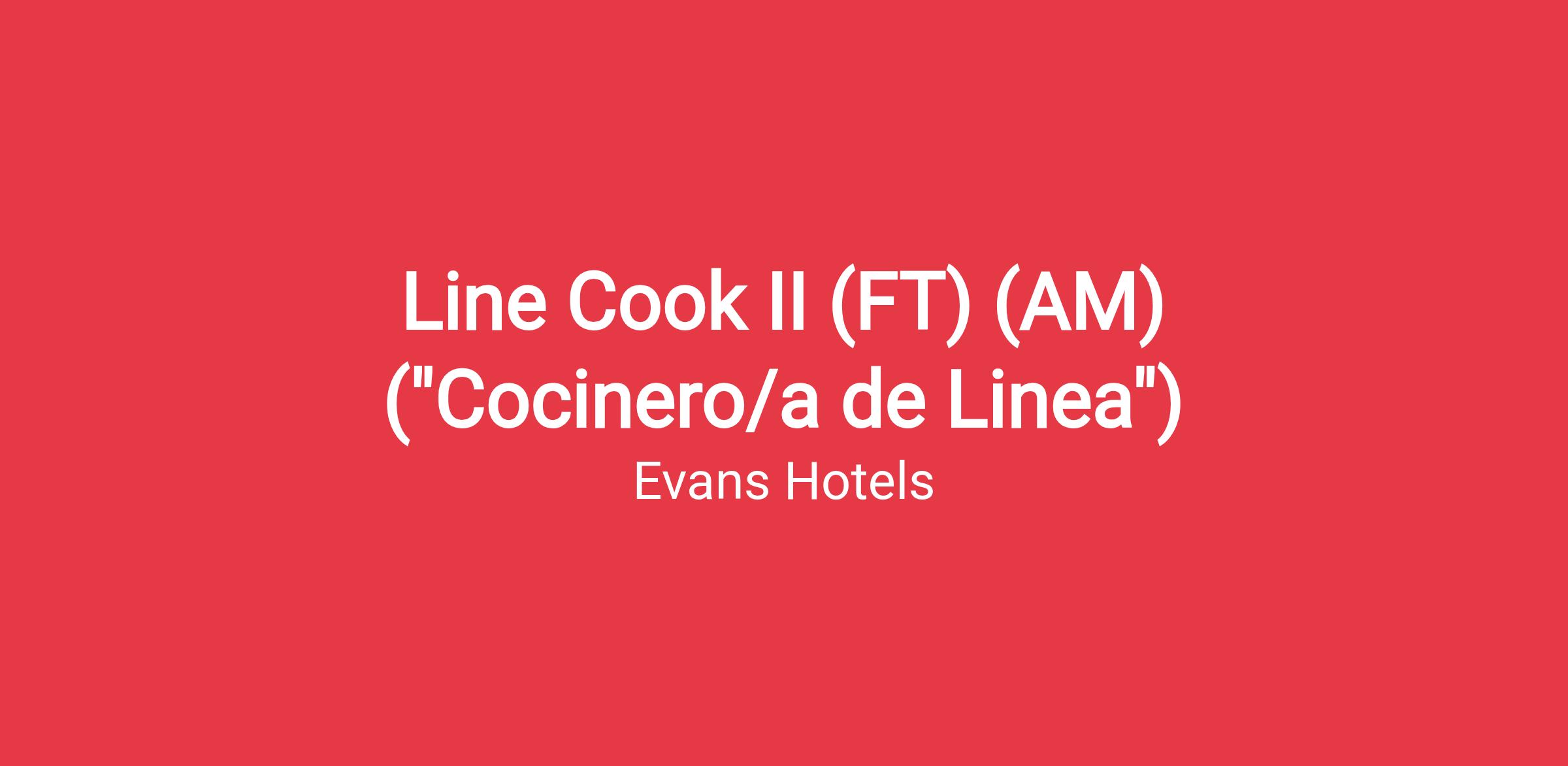 The Line Cook II ("Cocinero/a de Linea") prepares all menu items in specific station with the utmost of care and respect for ingredients, technique and fellow associates. Sets the example for all staff as to the pride and professionalism required to perform in a culinary environment of this caliber.