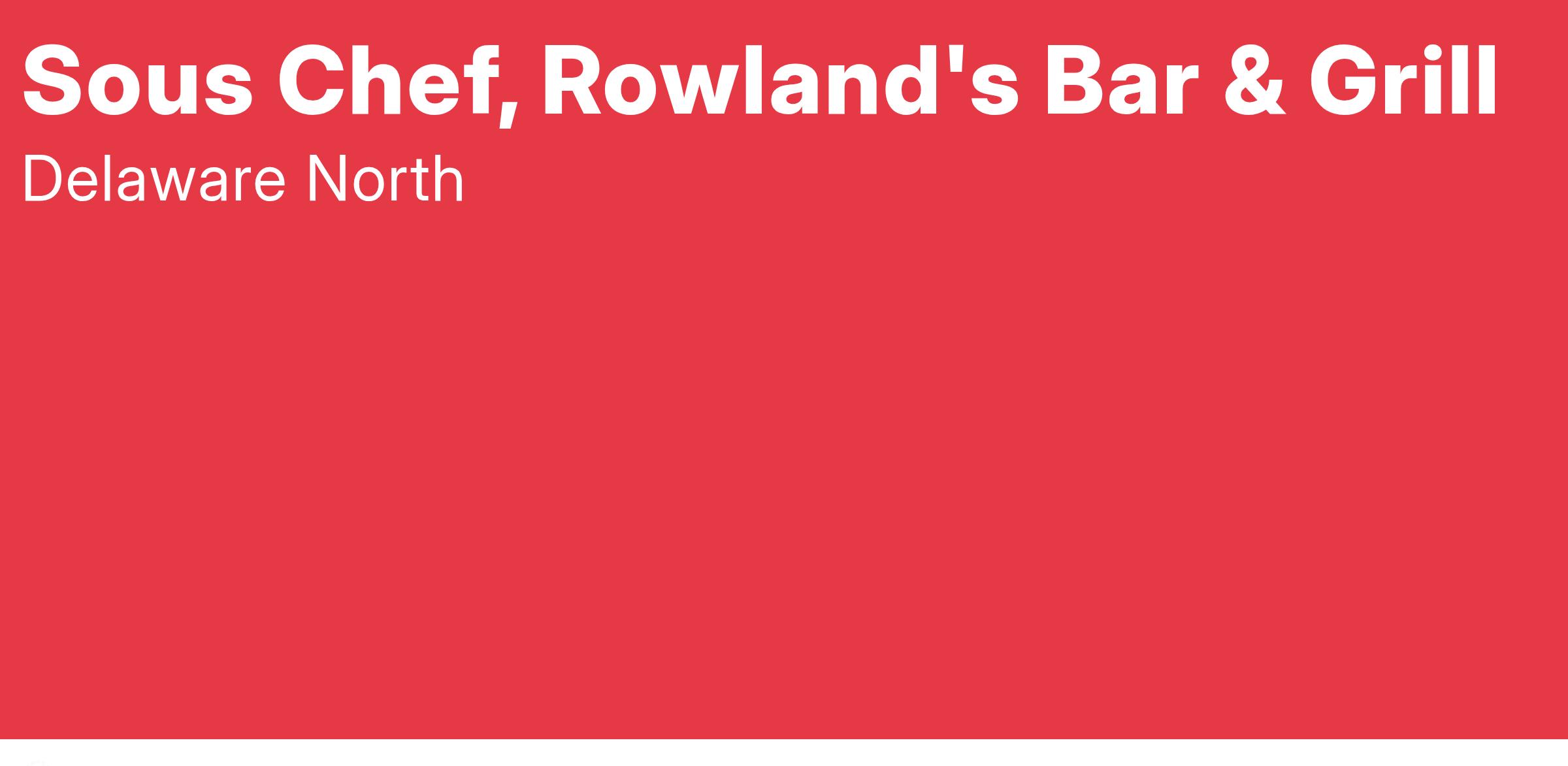 Delaware North's Patina Restaurant Group is searching for an experienced Sous Chef to join our team at Rowland's Bar and Grill in New York, New York. As the Sous Chef, you will successfully manage and supervise the production kitchen team as well as the ala carte restaurant. The ideal candidate will have high volume producton experience as well as strong knowledge of ordering and inventory.