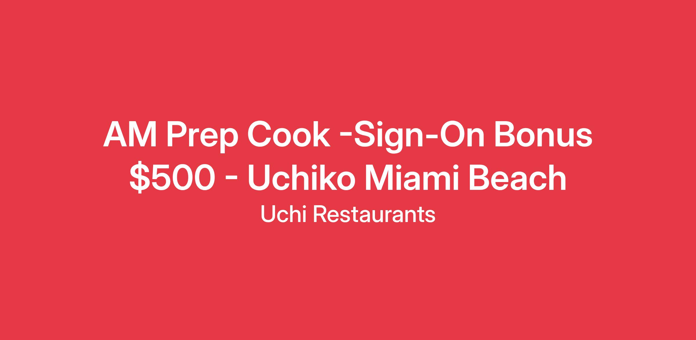 Uchiko Miami Beach is accepting applications for AM Prep Cooks. In this role, you will serve as vital member of our kitchen team to ensure a seamless dinner service and create amazing dining experiences for our guests. Whether you are new in your culinary journey or to the world of hospitality, or a seasoned cook looking for stability and structure, we offer gainful employment as well as great opportunities to grow with the organization long-term!
