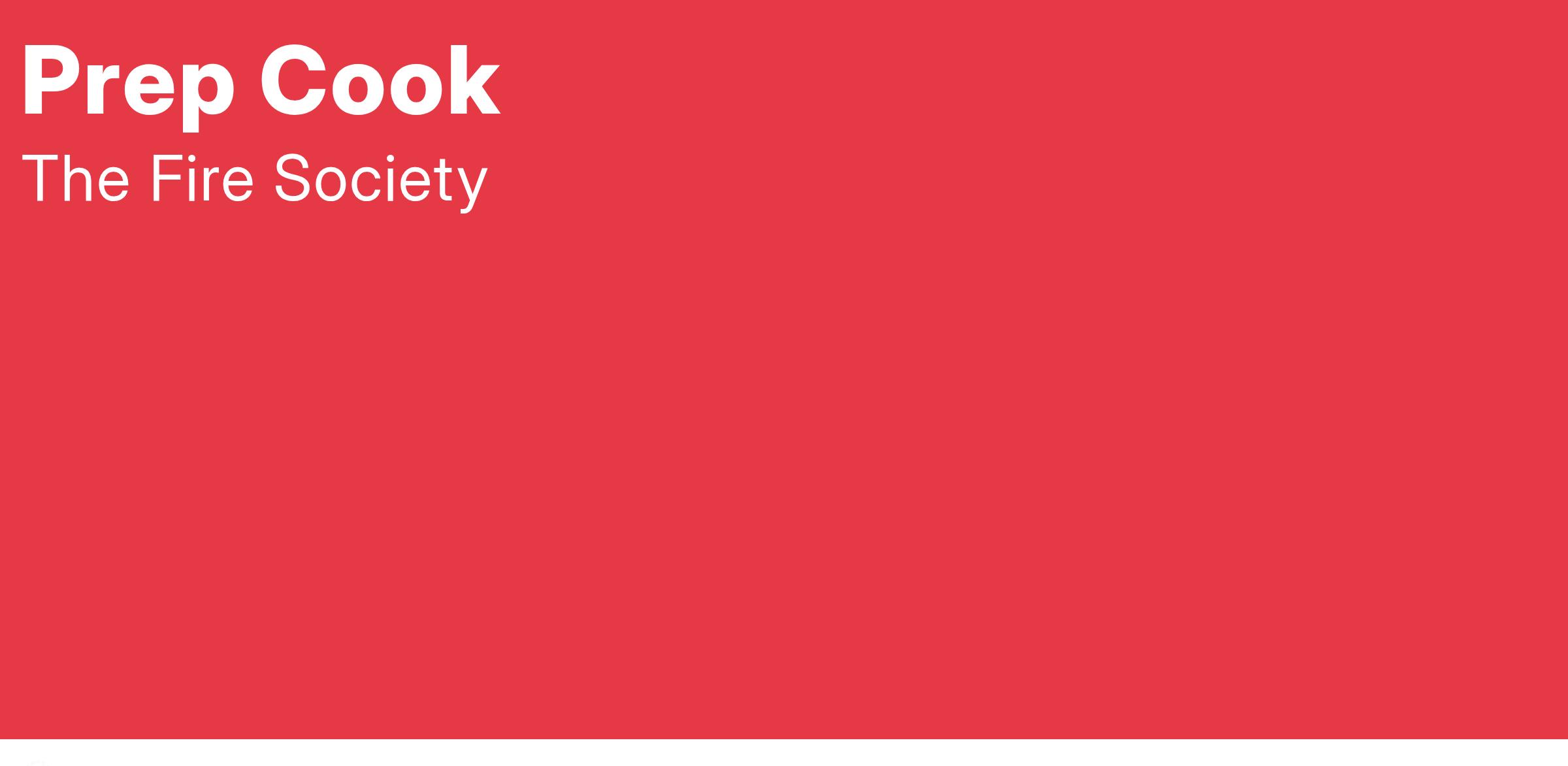 Prep Cooks at The Fire Society are responsible for the production of food for all TFS events, adhering to the highest possible standards of food and personal safety, efficiency, organization, product quality and culinary integrity. While our food adheres to strict quality standards and event-specific formats, prep cooks are expected to utilize their culinary experience and expertise to thoughtfully craft the best possible product within the guidelines set by supervisors.